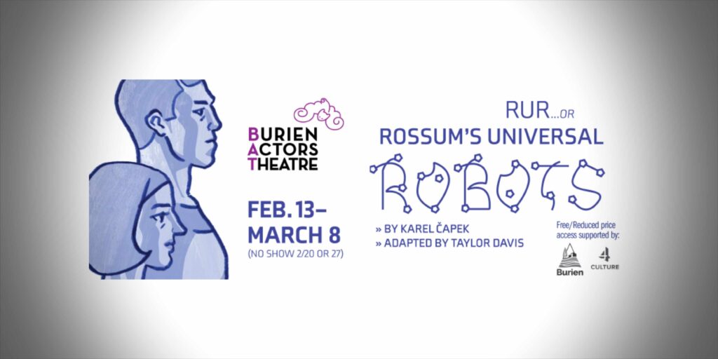 Burien Actors Theatre (BAT) explores AI through the 1920s lens of the play that coined the term “robot”, R.U.R. (Rossum’s Universal Robots) opening this Friday night,…