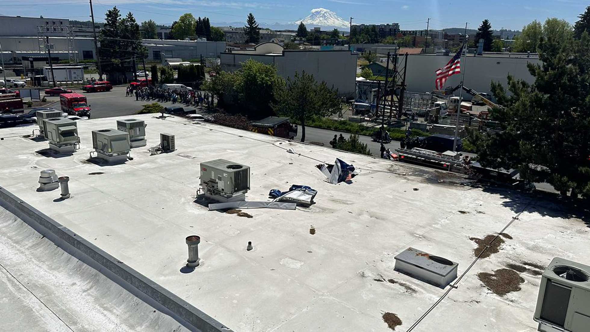 Fire and police crews responded to a small plane crash into the roof of a building in the 400 block of C Street NW in Auburn (map below) on Thursday afternoon, June 6, 2024.