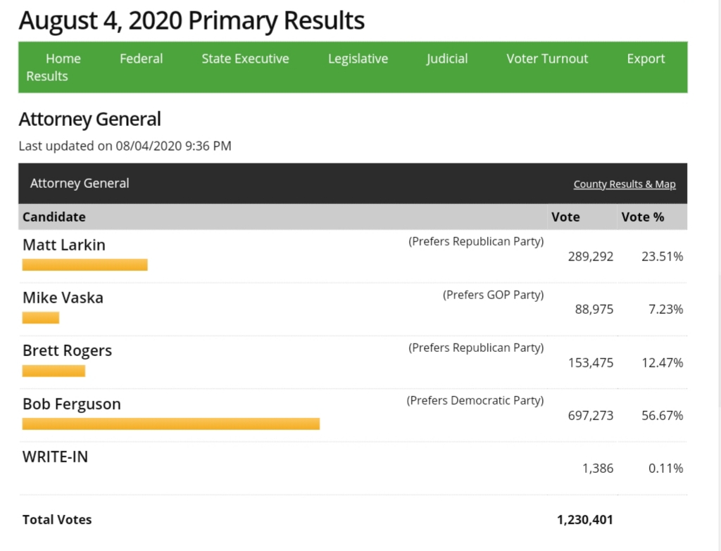 Below are the initial Primary Election results. As Auburn is in both King and Pierce County, these results are from both Counties. Please note that as Washington is a mail-in vote state, results will continue to be posted each weekday until they are certified.