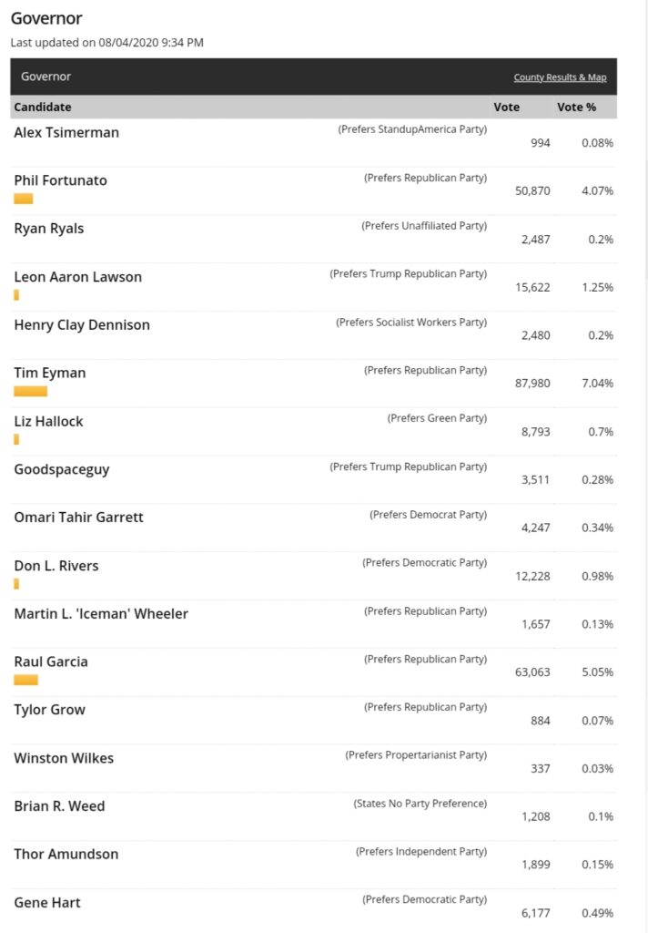 The next results update will be 4:00pm on August 5. Subsequent updates are scheduled weekdays at 4:00pm until August 18. The Primary Election results will be certified August 18.