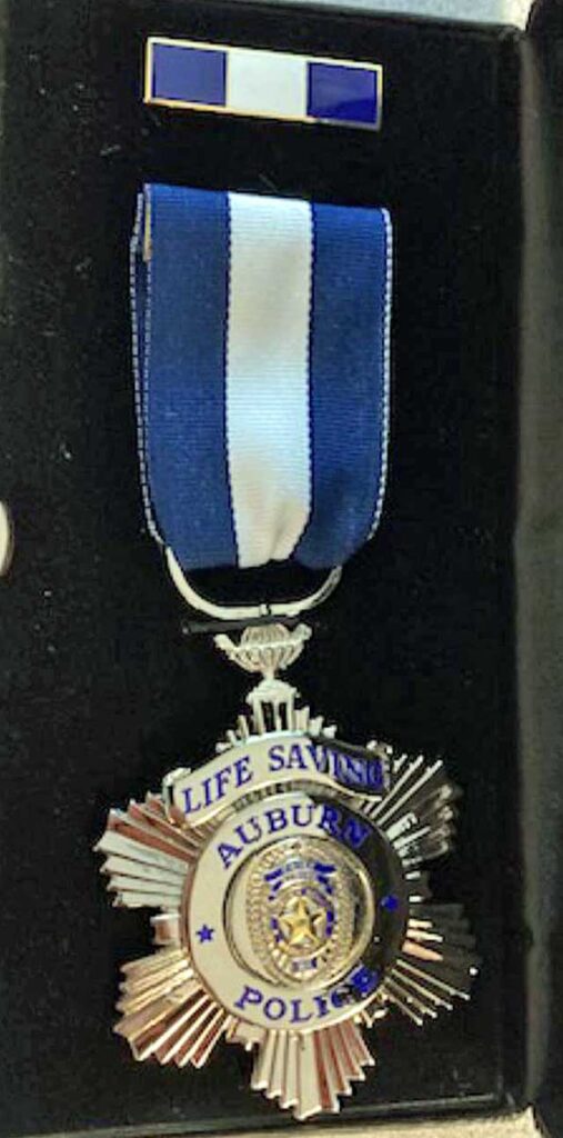 The Auburn Police Department proudly awarded Officer Koorstad the Life-Saving Medal, recognizing his heroic efforts to save a young life.