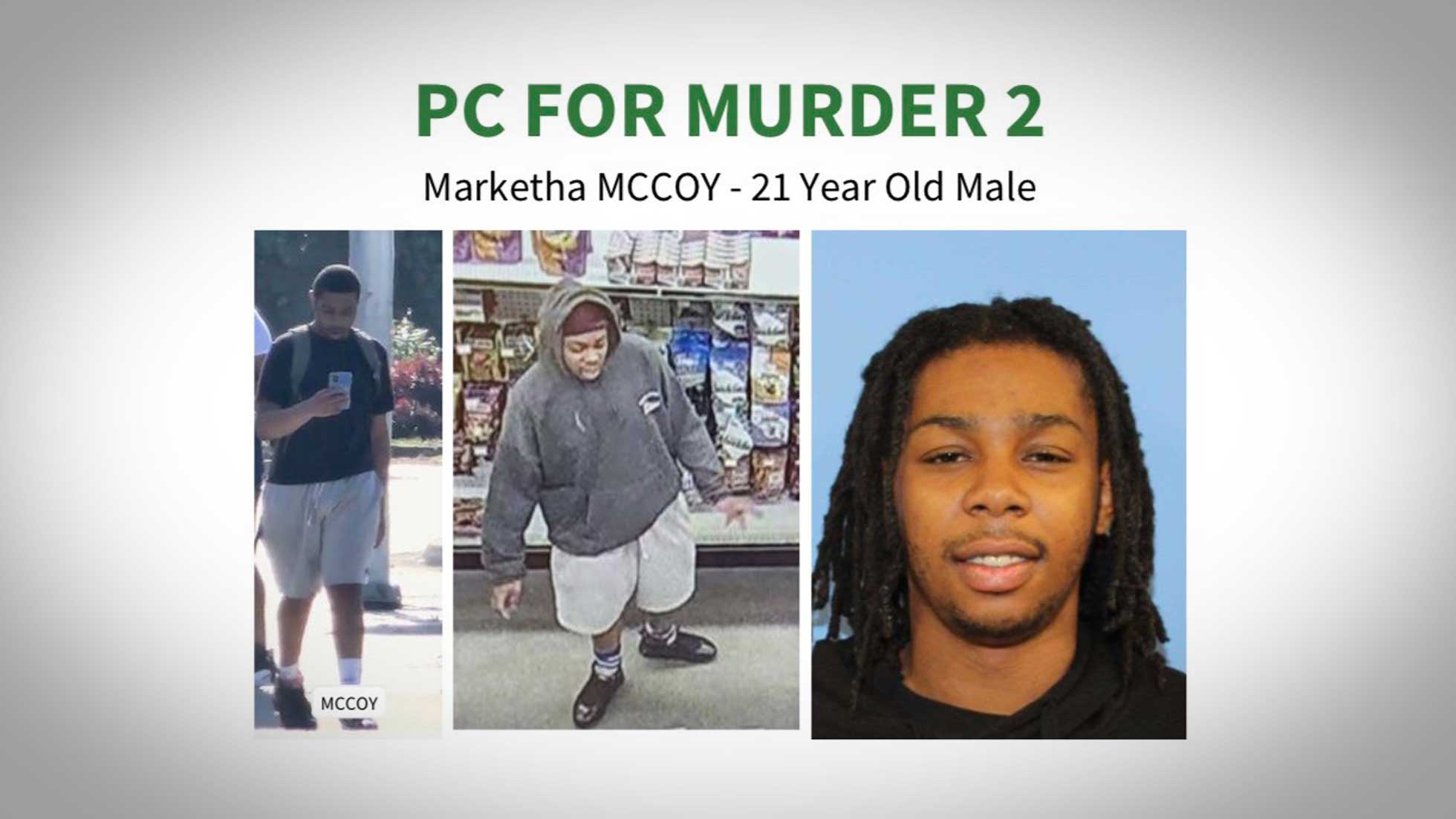 Police say that Marketha McCoy, a 21-year-old male, is wanted for Murder 2.