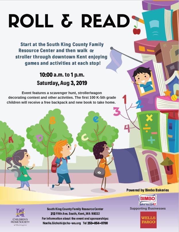 Children’s Home Society of Washington hosts its annual Roll & Read event supported by Bimbo Bakeries and Wells Fargo that celebrates learning for all ages. Start at the South King County Family Resource Center and then walk or stroller through downtown Kent enjoying games and activities at each stop.