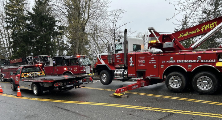 Recovery efforts were underway as of Wednesday, and westbound Lakeland Hills Way Southeast was closed at 47th Street Southeast.