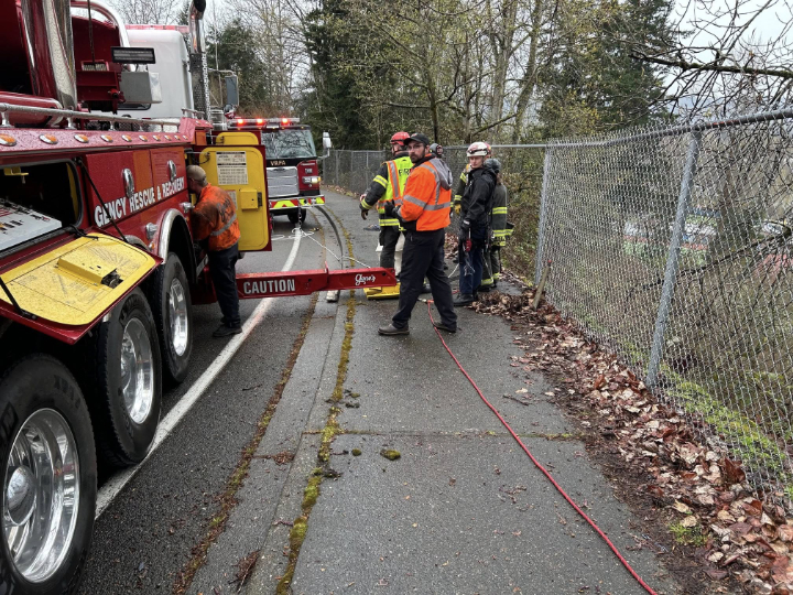 A single-vehicle crash in Auburn closed part of Lakeland Hills Way SE on Wednesday, April 1 as crews work to recover a vehicle that went down an embankment, according to the Auburn Police Department.
