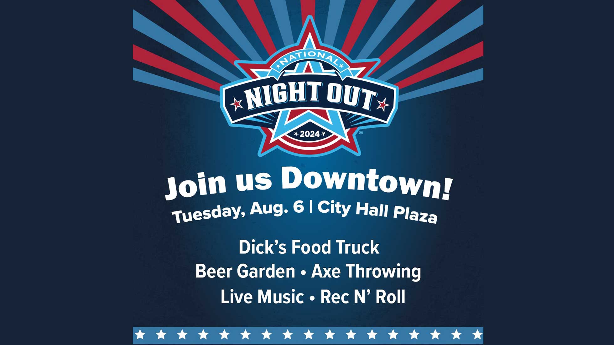 National Night Out will be held at the Auburn City Hall Plaza on Tuesday, Aug. 6, 2024, between 5 p.m. – 8 p.m.