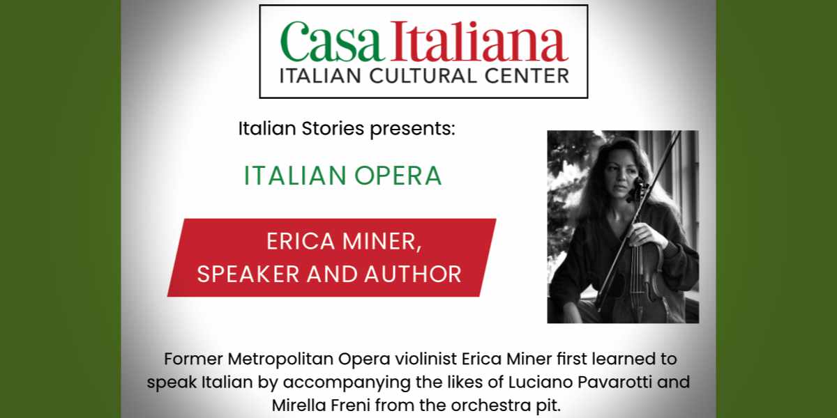 Erica Miner, a former Metropolitan Opera violinist and now Seattle-based author, will be presenting an engaging discussion on Italian opera at Casa Italiana in Burien… |