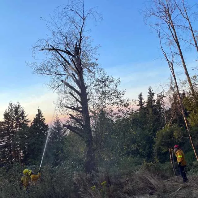 Fire crews from multiple agencies quickly contained a blaze that tore through an abandoned structure in Auburn on Wednesday evening, Aug. 13, 2025, preventing it from spreading further into nearby vegetation.