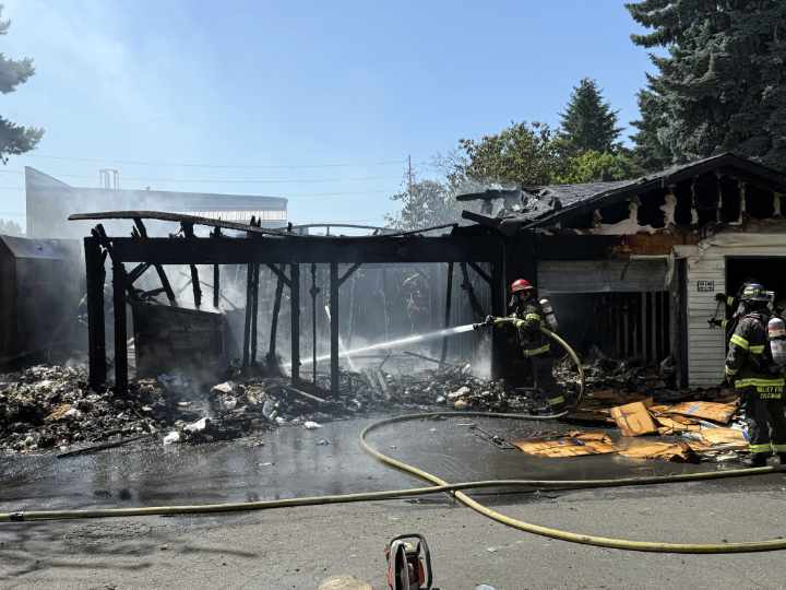 Crews with the Valley Regional Fire Authority responded Tuesday afternoon, June 10, 2025 to a garage fire in the 800 block of 45th Street NE in Auburn (map below), where flames damaged four garage units and scorched the siding of a nearby apartment building.