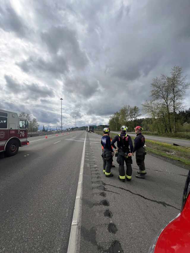 Crews and multiple agencies are at the scene. There is no ETA for reopening. Traffic backup is almost 5 miles. Use alternate routes and expect delays. https://t.co/HfegZ7LkyY pic.twitter.com/4SVjwr3vJ2 — WSDOT Traffic (@wsdot_traffic) April 7, 2025