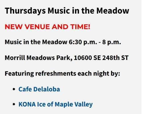 - SeaTac – Friday, July 25, 7 p.m. Riverton Heights Park