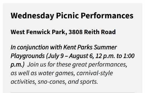 - Sunday, July 27, 5 p.m. Marvista Park, Normandy Park