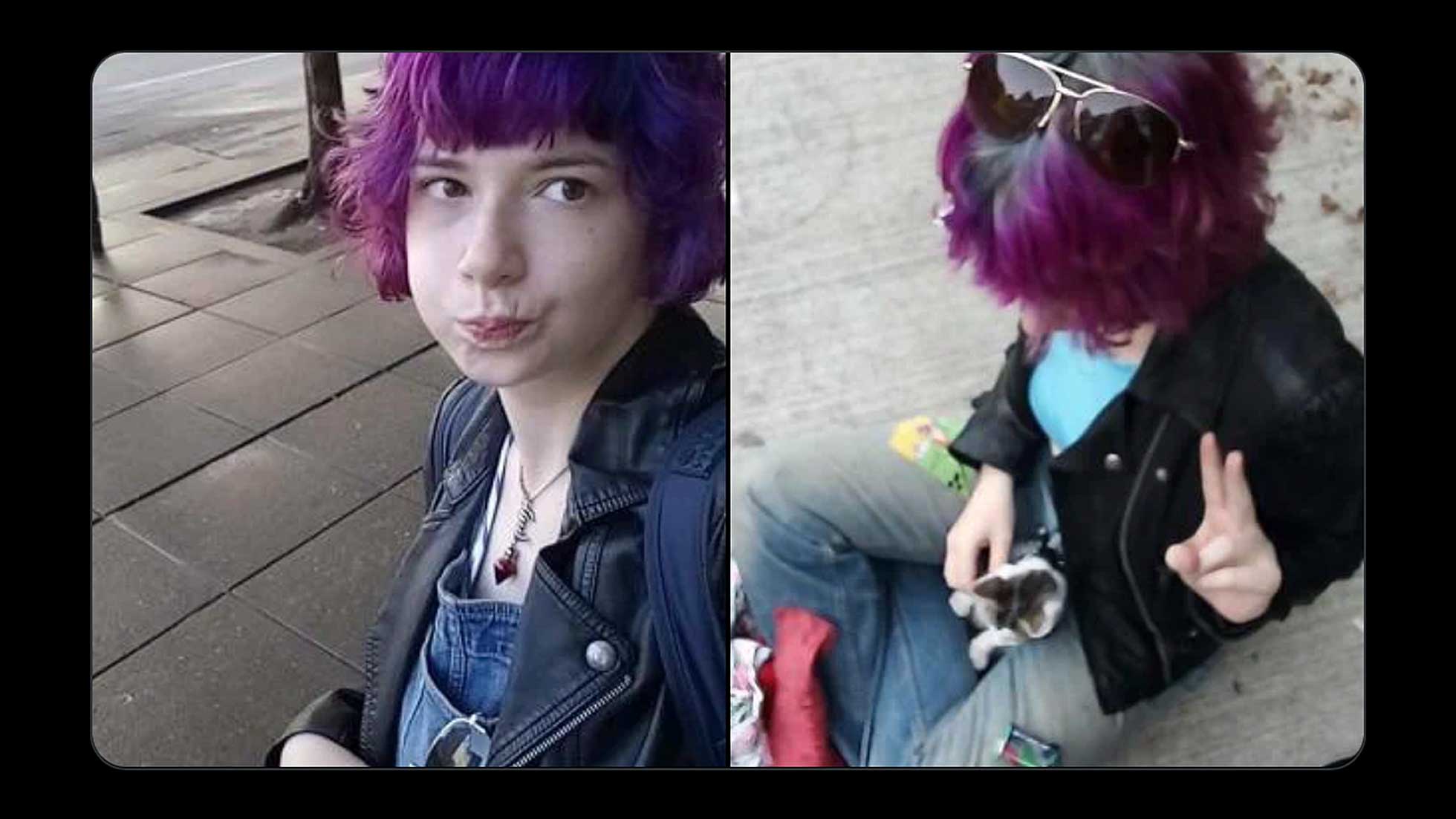 Ariel prefers to be called “Jude,” is 5′ 6″ tall, weighs 130 pounds with purple hair.