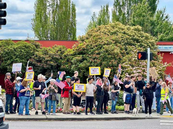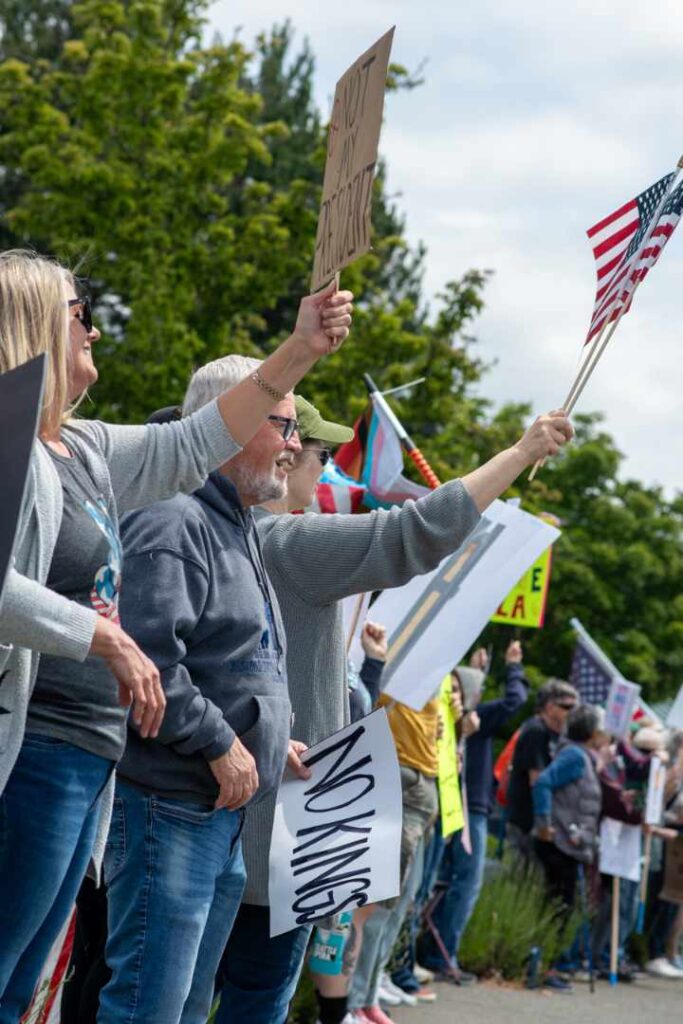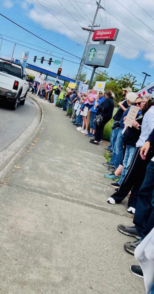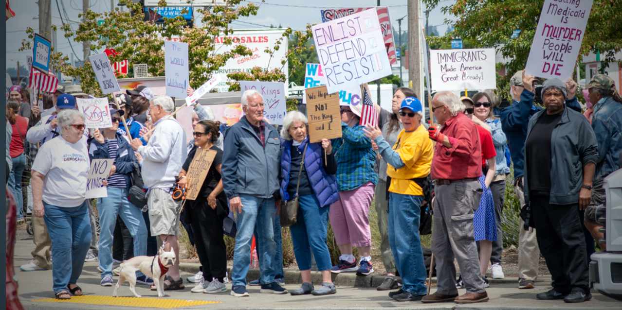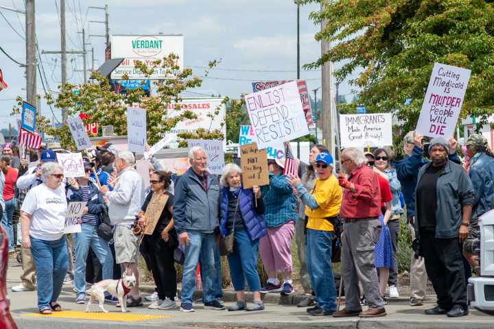 “We protest for our rights, our values, and our futures — preserving democracy for our children and communities,” Indivisible Auburn WA representative Vicki Bates wrote in a statement. “We will not be silenced.”