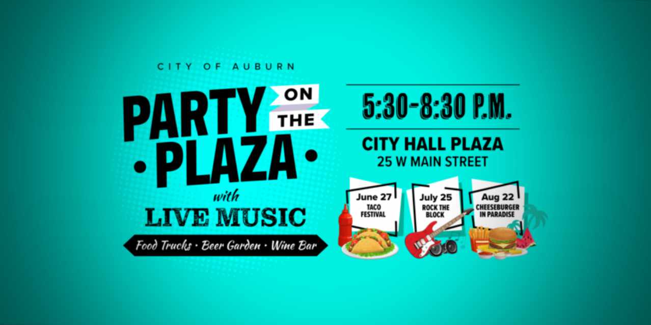 Downtown Auburn will come alive with live music, food trucks and summer fun when Party on the Plaza returns this Friday, July 25, 2025 with this month’s theme: Rock the Block.