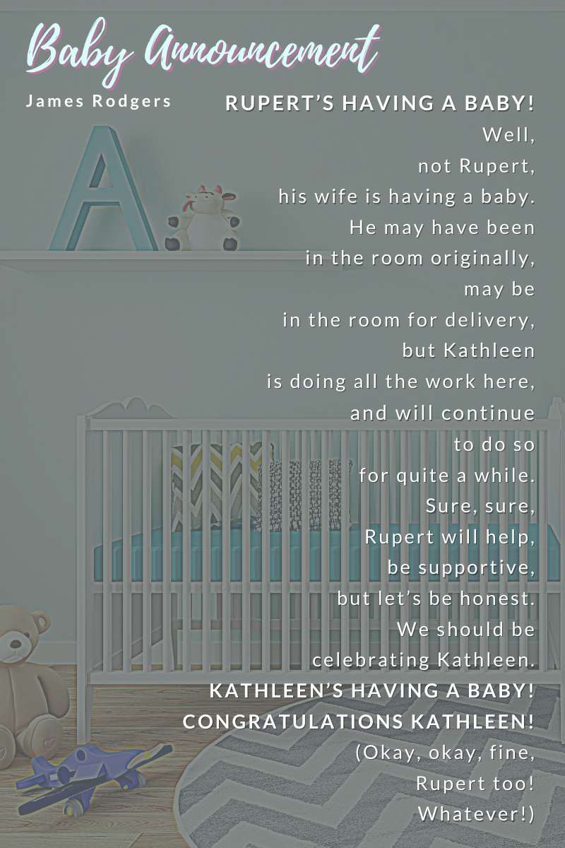 A co-worker of mine recently announced that his wife is pregnant, and as a part of the baby shower gift, I was asked to write a poem to add to the card. This may not be what anyone was hoping for, but it feels honest and right to me. Keep on writing, and I hope the days get back to normal speed for all of us!