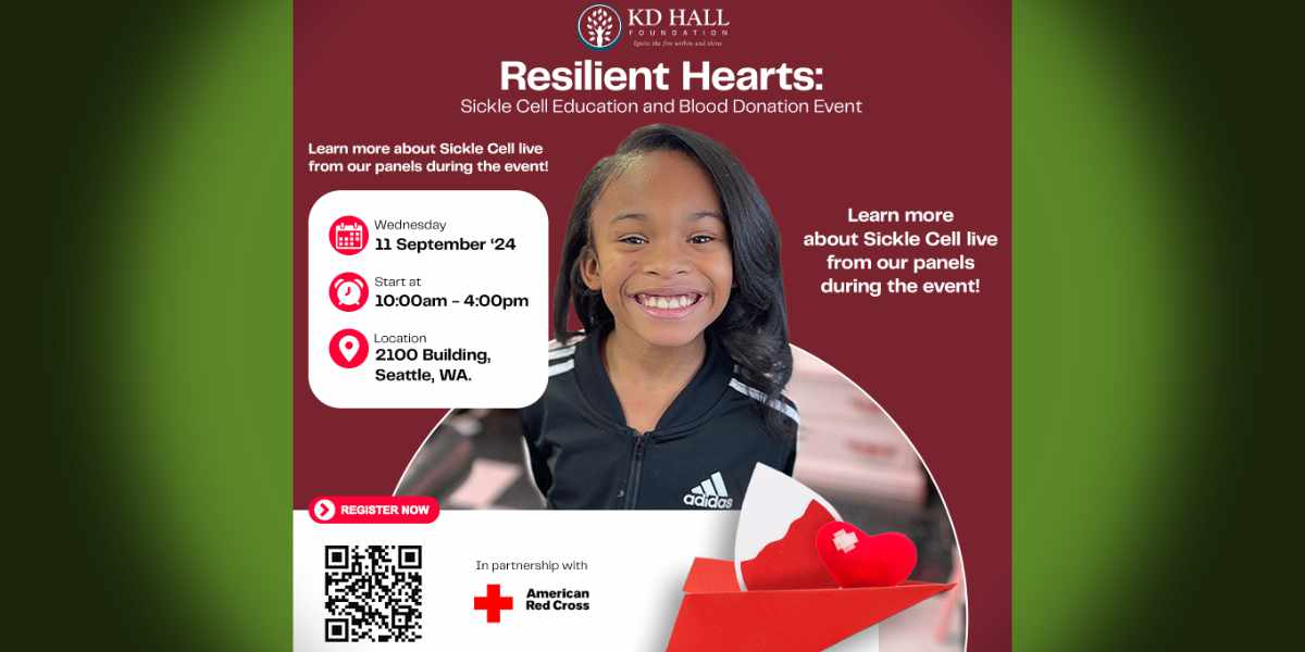 REMINDER: The KD Hall Foundation’s “Resilient Hearts: Sickle Cell Education & Blood Donation” – a transformative event dedicated to raising awareness and fostering support for those affected by sickle cell disease – will be held this Wednesday, Sept. 11, 2024.