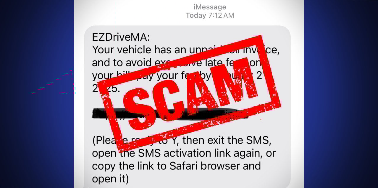 The scam involves fraudulent messages claiming to come from the Massachusetts third-party tolling system, EZDriveMA: