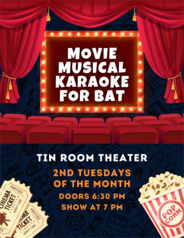 “Movie Musical Karaoke is held on the second Tuesday of each month, with the proceeds going to BAT Theatre, which brings you better live theater!”