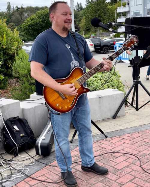 “Music in the Market, rain or shine. Come out the market to enjoy the fruits, vegetables, coffee, and crafts from local farmers and vendors. While you’re there sit and listen to some music played in singer songwriter style on guitar by Steve Russell.”