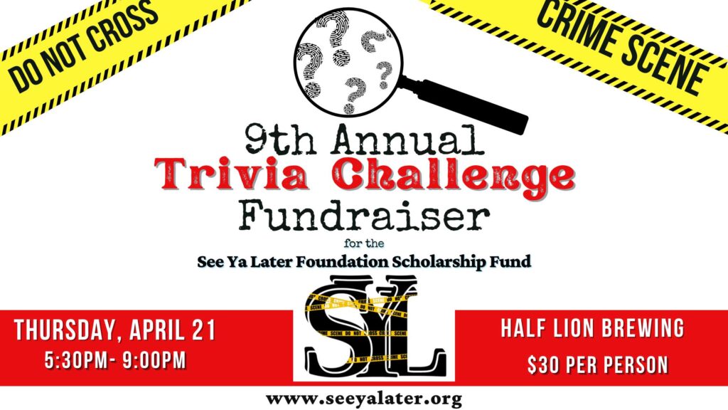 The See Ya Later Foundation, based in Auburn, is hosting their 9th Annual Trivia night, Thursday, April 21st, at the Half Lion Brewery in Sumner.…
