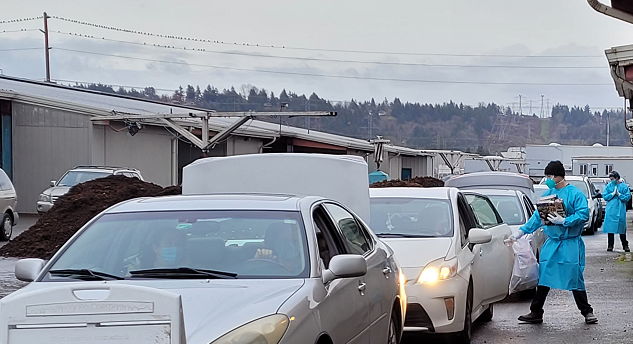 Unlike most drive-up events, the Toys for Kids event could not prepackage items for families. A fulfillment system was used to ensure the safety of those being served, firefighters, and event volunteers.