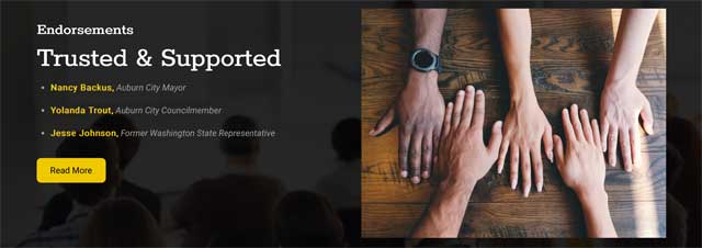 Taylor has been active in the South King County business community, where he professes a desire to pursue racial and gender equity, uplift and empower all people and youth, with a special focus on individuals seeking to re-enter society following incarceration (Taylor is a felon who served in prison).