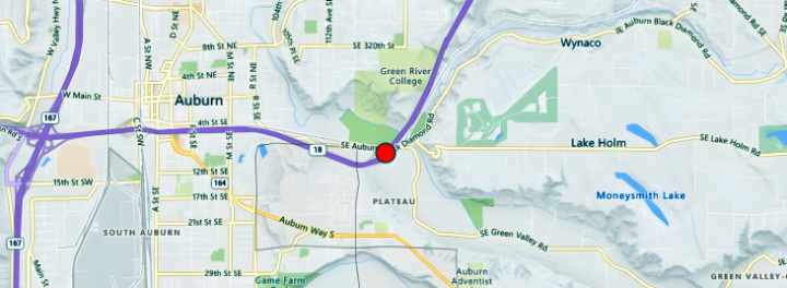 A wrong-way crash on SR 18 just east of Auburn/Black Diamond early Saturday, Jan. 17, 2026 left two drivers injured and blocked the roadway for more than four hours, according to the Washington State Patrol (WSP).